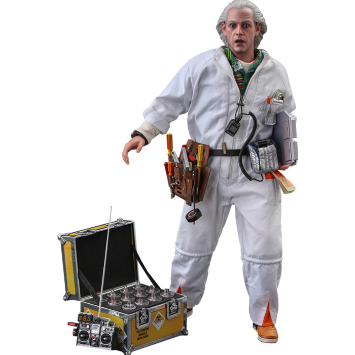 A Figura Colecionável da Sexta Escala Doc Brown (Versão Deluxe) apresenta: