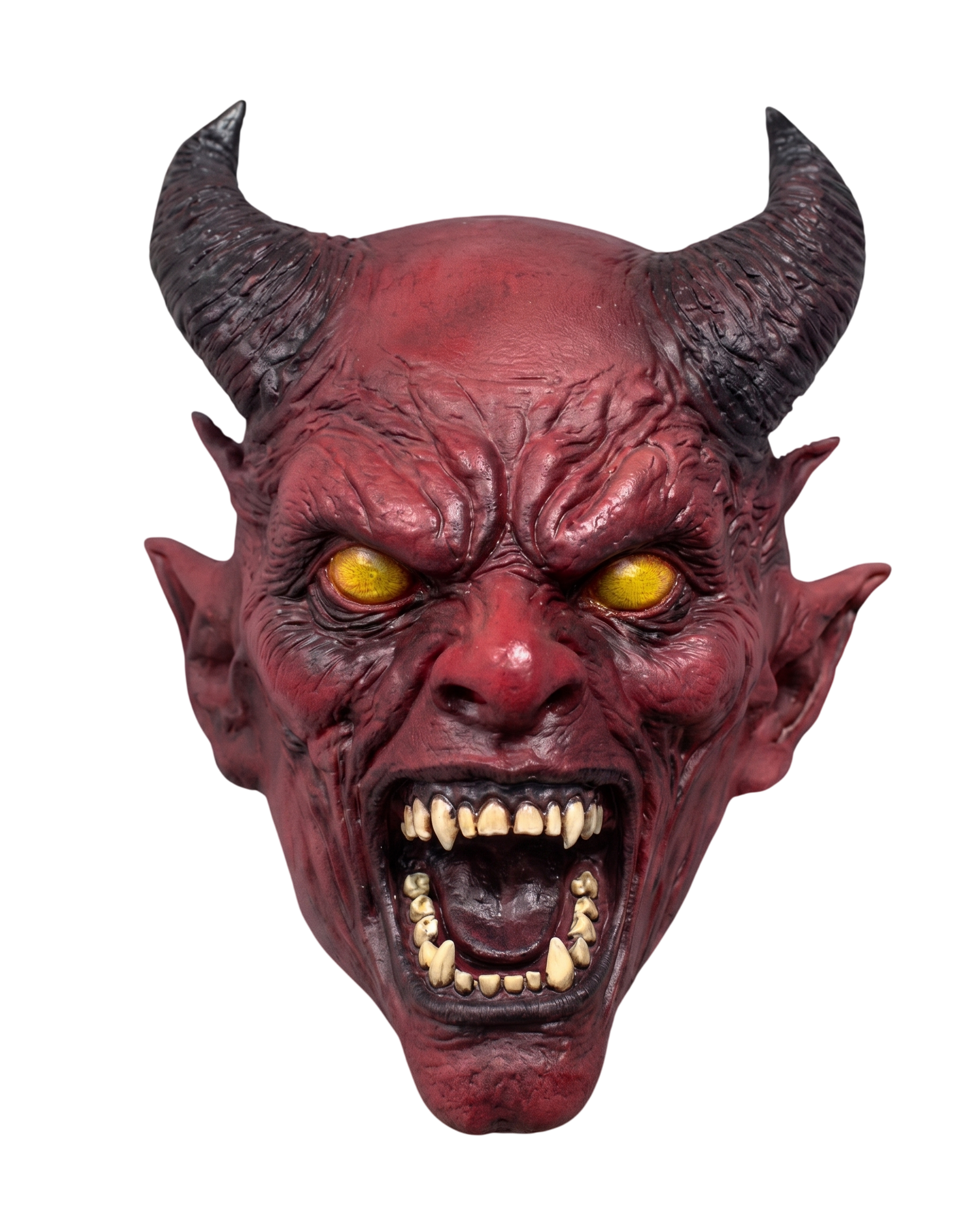 Assuste com estilo! Máscara Demon realista em látex de cabeça inteira, com pintura artesanal, e detalhes impressionantes.